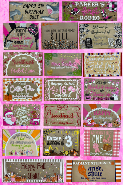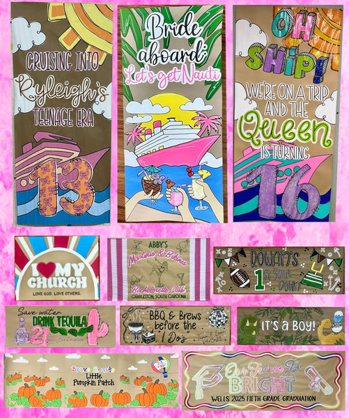 Add a touch of whimsy to any event with our Hand Painted Banners. Perfect for all occasions, this banner adds a unique and playful element to your decorations. Hand painted for a personal touch, it's sure to be a hit at any event!